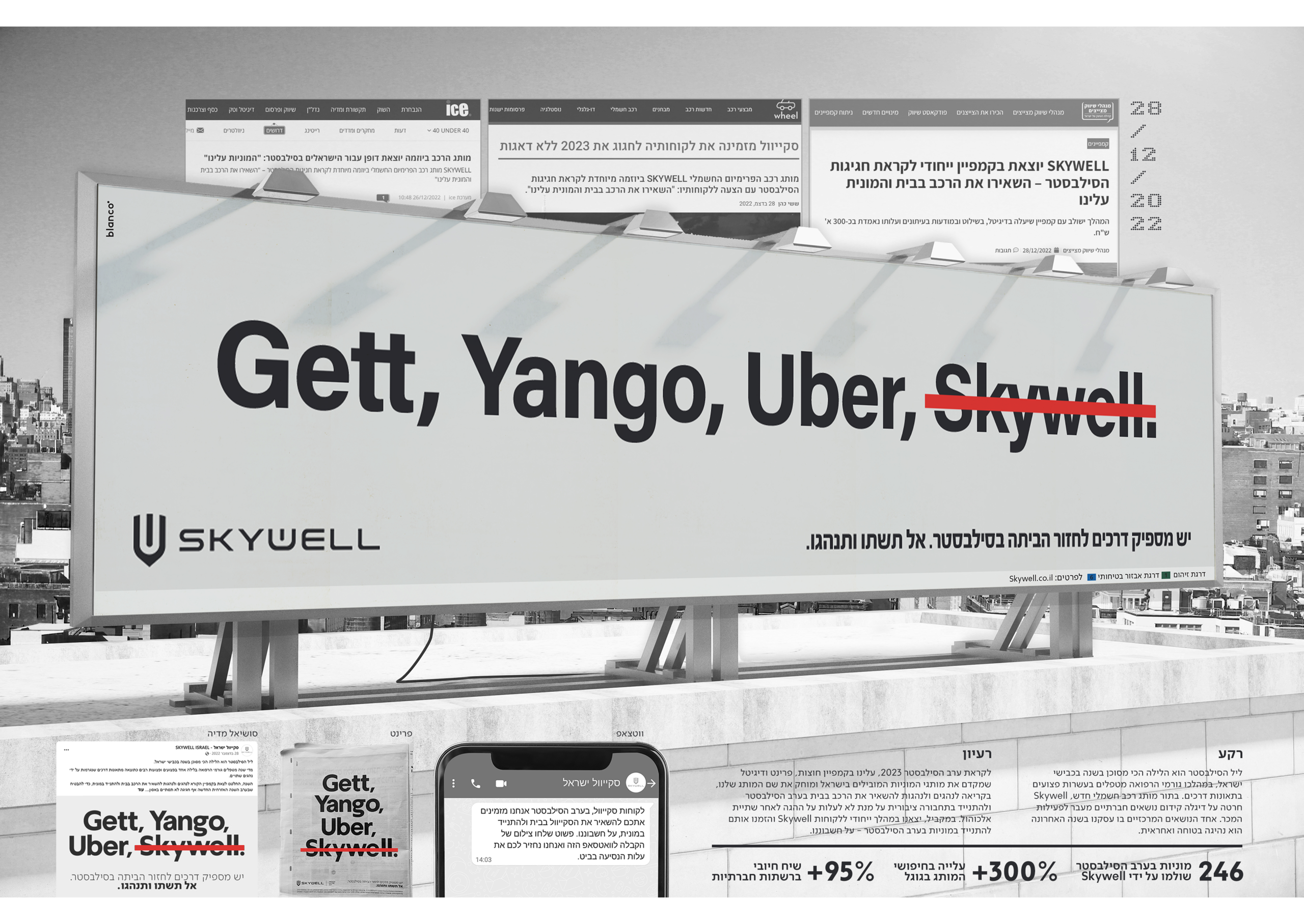 כדי להעלות את המודעות לנהיגה תחת אלכוהול יצא מותג הרכב skywell במהלך יוצא דופן בערב השנה האזרחית החדשה בו הוא מבקש מהציבור להשאיר את הרכב בבית, להתנייד בתחבורה ציבורית ולשלוח ל skywell את החשבון.